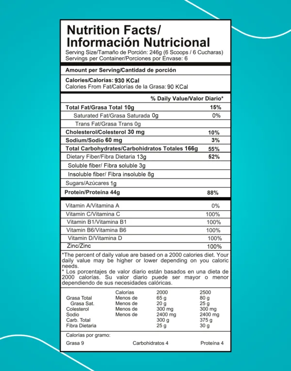 Un Ganador de peso INTELIGENTE: alimento con gran aporte calórico sin azúcar que puedan afectar la estética y el rayado muscular.